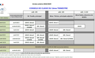 Planning des conseils de classe du 2