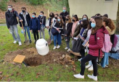 Une journaliste du journal Le Télégramme était présente pour assister à l’enfouissement de la capsule temporelle par le groupe « Euro anglais » avec Mme Massol et Mme Merrien.