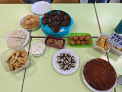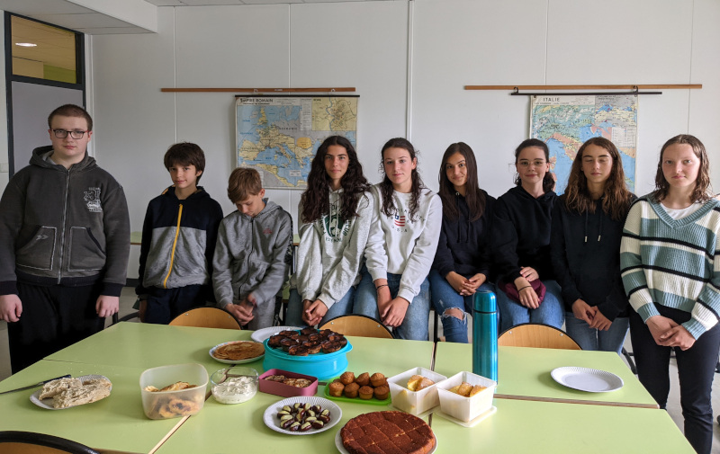 Qu’à cela ne tienne, nous avons donc coupé la poire en deux : la visite du site gallo-romain sous la pluie ainsi qu’une montée jusqu’au champ de fouilles de la villa de Gorré Bodivit avant de rentrer au sec pour apprécier les desserts confectionnés par les latinistes de 4è, en illustration de la séquence sur l’habitat et la cuisine antique.