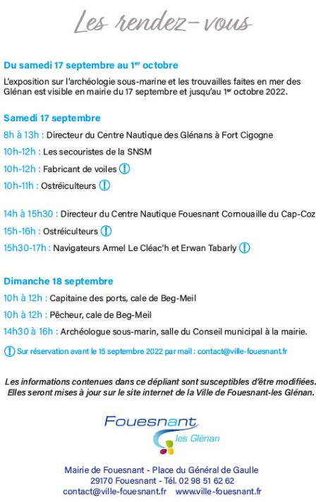 Les Journées Européennes du Patrimoine qui auront lieu les samedi 17 et dimanche 18 septembre 2022. A Fouesnant, elles seront dédiées aux Métiers de la Mer.