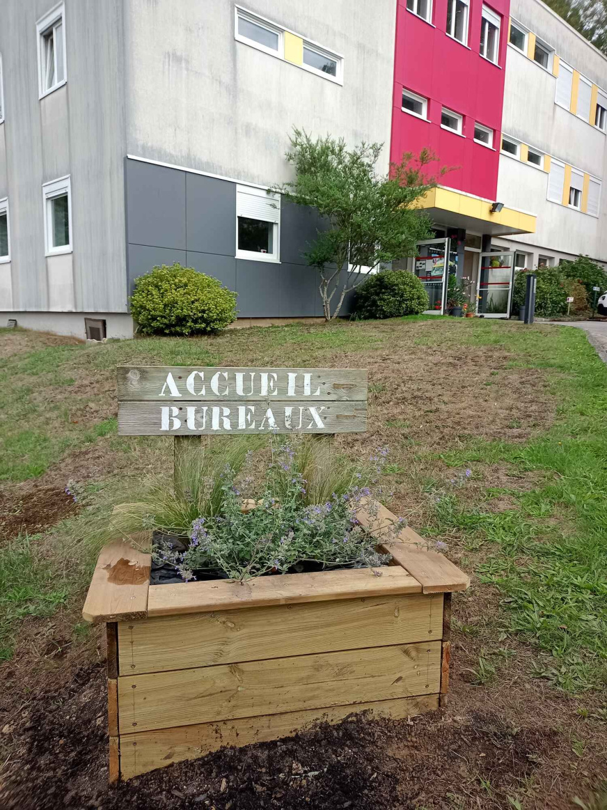 Depuis cette semaine, le fléchage qui guide élèves, familles ou autres visiteurs vers l’accueil du collège et les bureaux administratifs s’est agrémenté d’une belle jardinière.