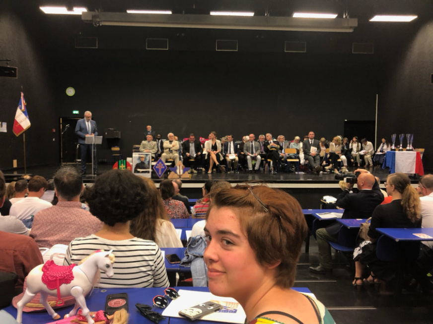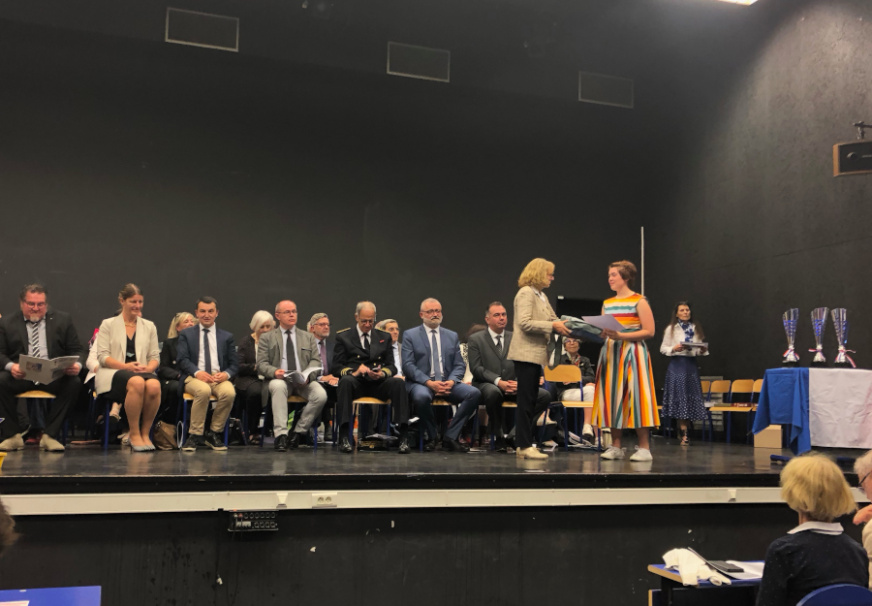 Margot LINARES (3e6) a reçu son prix de lauréate du Concours National de la Résistance et de la Déportation à la faculté des lettres et sciences humaines Victor Segalen, le samedi 27 mai 2023, accompagnée de ses parents et de son professeur d’histoire, Luc Colpart.