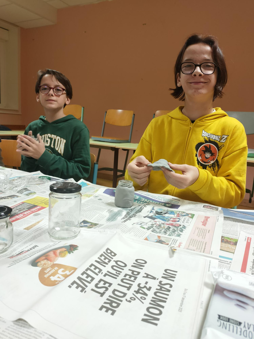 La première séance a eu lieu le jeudi 14 décembre pour le premier groupe. Ils ont modelé la forme d’un champignon sur un pot de confiture.