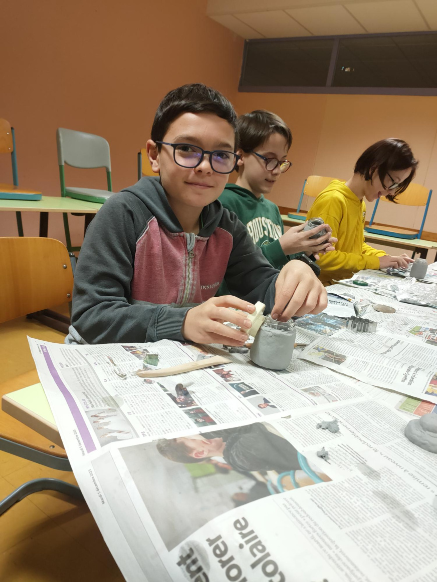 Quelques élèves volontaires participent sur le temps de la pause méridienne à un atelier poterie.