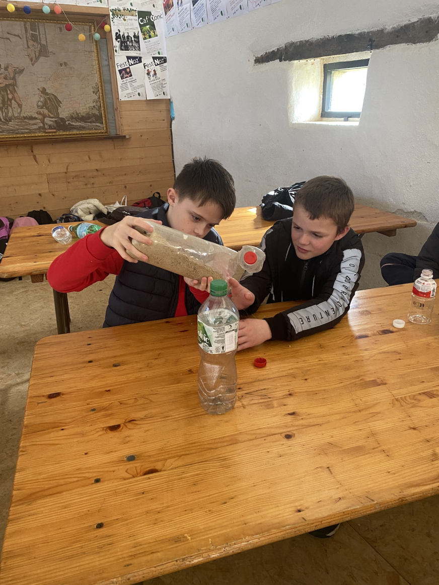 Chaque classe a participé à 2 ateliers qui ont permis aux élèves de découvrir les caractéristiques d’un son, de réaliser des objets sonores avec des éléments naturels ou des matériaux recyclés pour jouer de la musique ensemble .