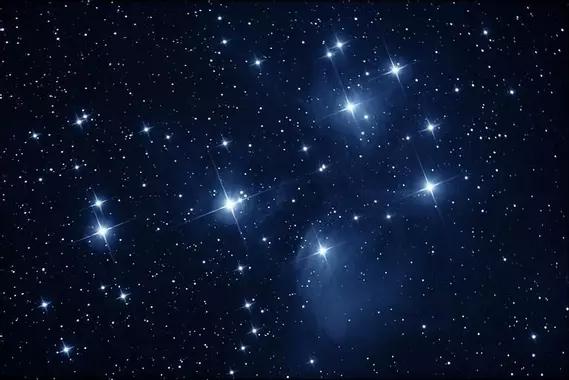 Juste à côté de la constellation du taureau, on remarque maintenant très facilement une petite grappe d’étoiles : « the seven sisters » c’est à dire le fabuleux amas des pléiades. Véritables petits diamants légèrement bleutés incrustés sur la voûte céleste.