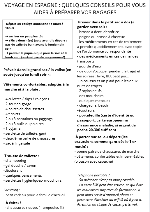 Lundi 10 mars, les élèves qui partiront ce dimanche ont été réunis en salle A105 pendant la pause méridienne pour les derniers conseils avant le départ.