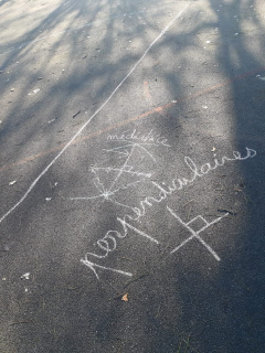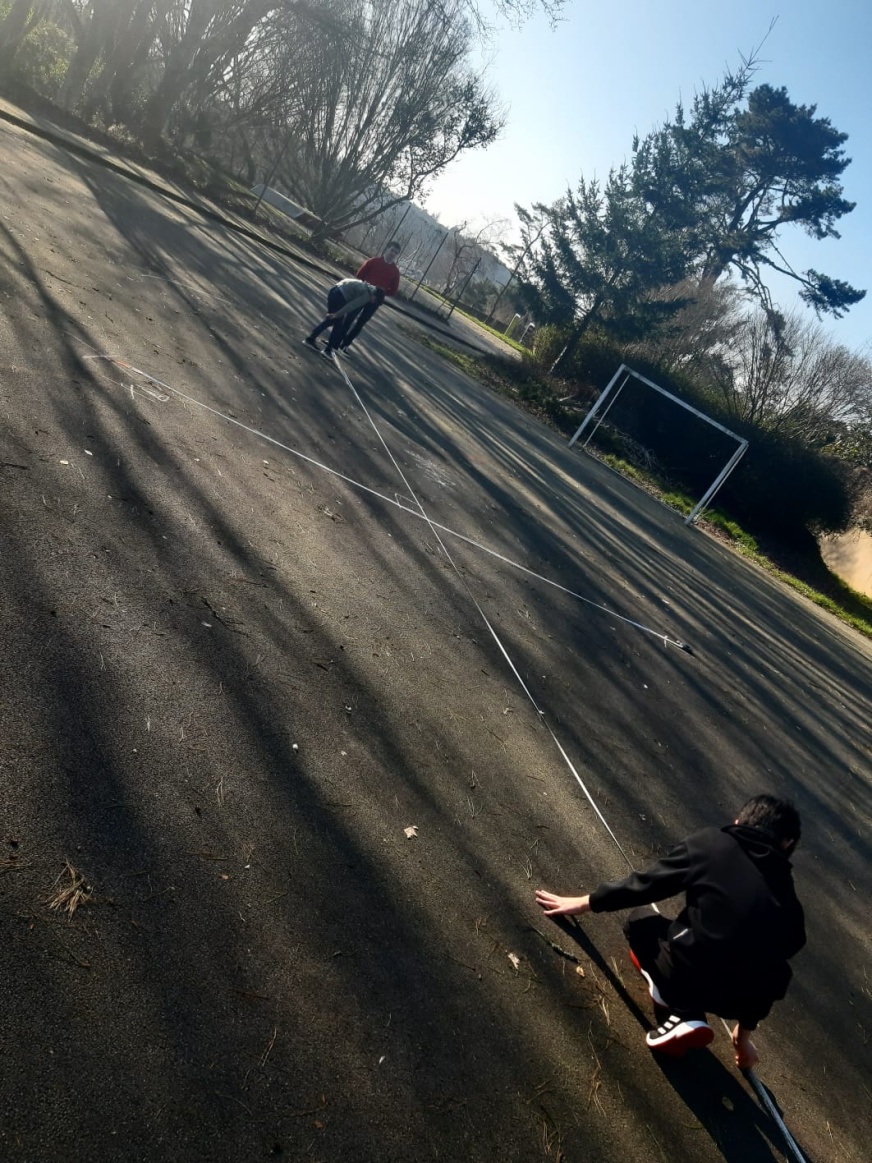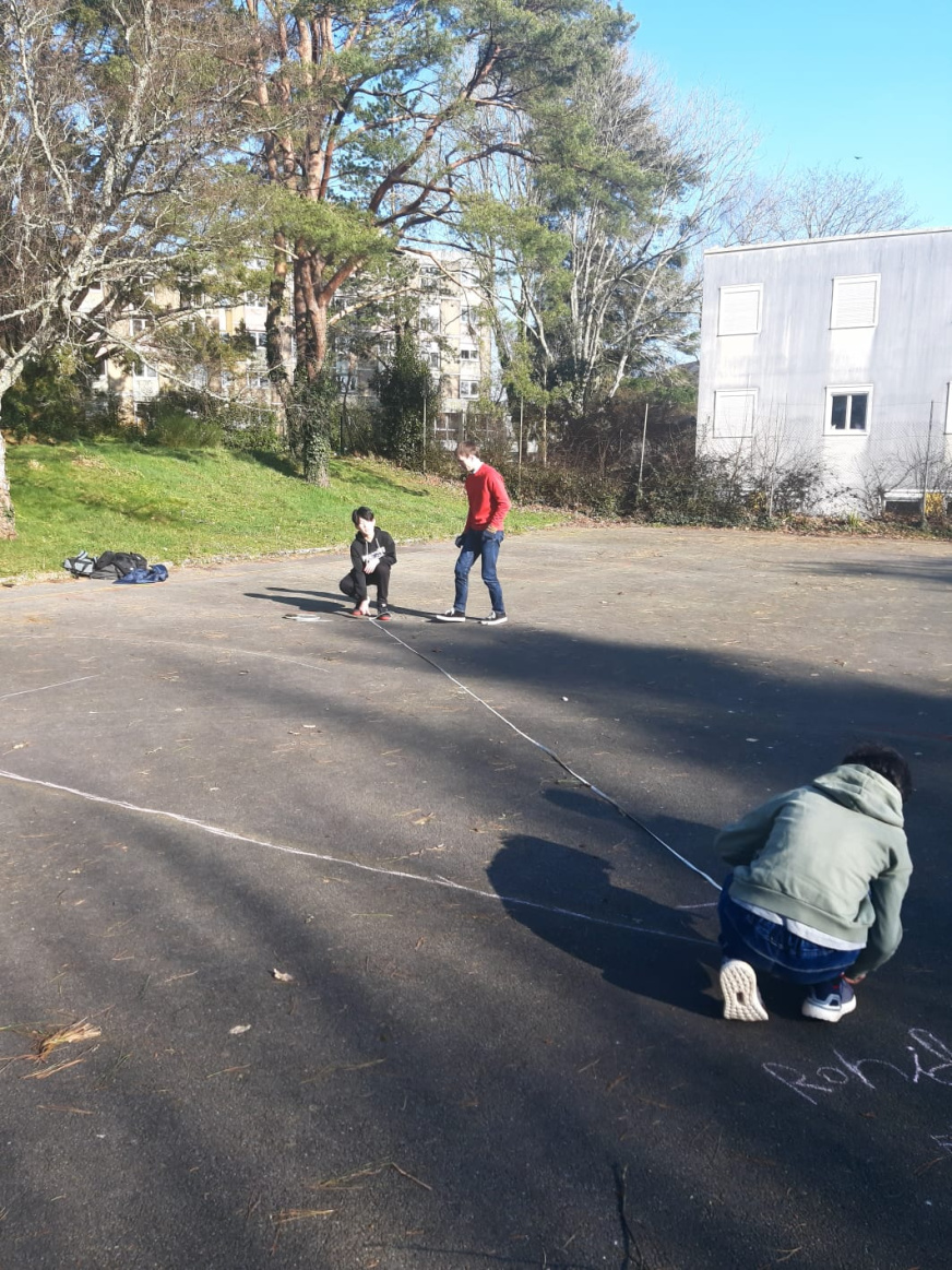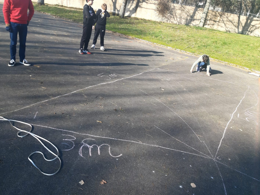 Lundi 3 mars, nous profitons du beau temps pour prendre de l’avance sur cet évènement avec des élèves de 5e5 en faisant de la géométrie dans la cour.
