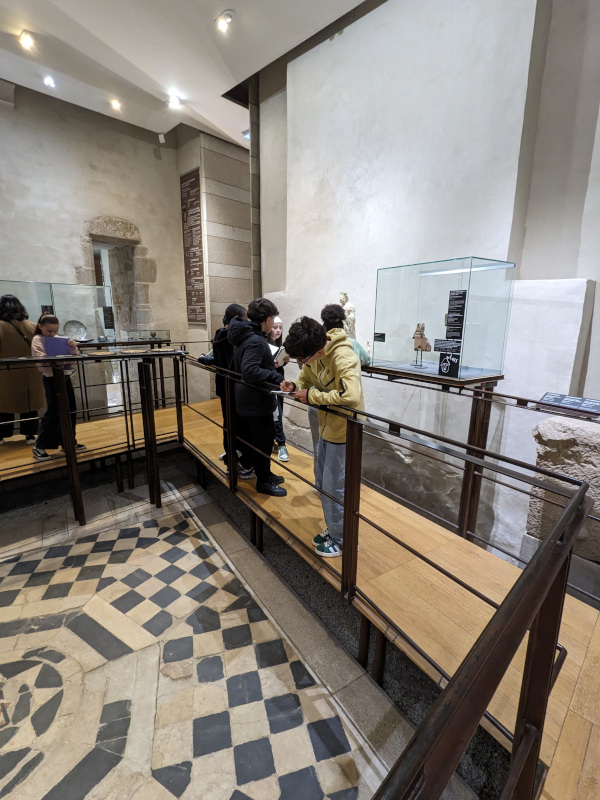 Ensuite, une heure vingt de recherches au Musée autour des vestiges et objets du quotidien des Gallo-Romains trouvés dans la région. Les élèves ont ainsi un premier aperçu des thermes ou bains romains, découvrent quelques dieux dont les Lares et les Pénates, ou Janus, moins connus que Mercure et Neptune, présents aussi.
