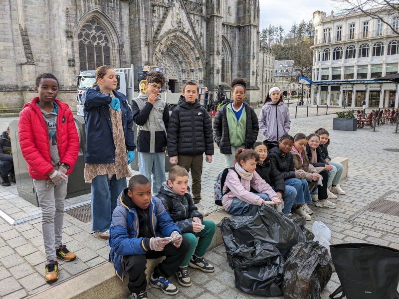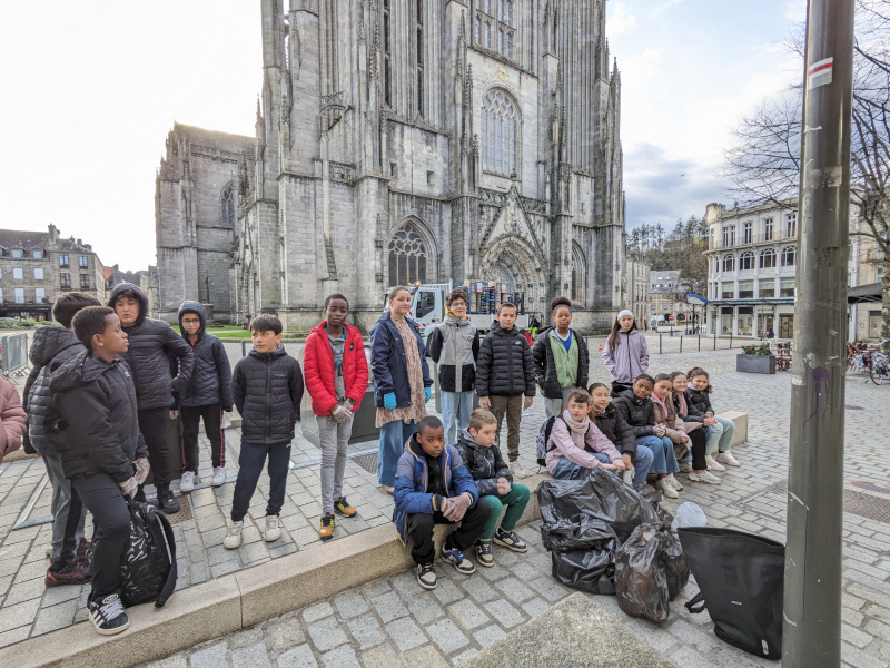 Malgré une météo peu favorable, les 6è 2 et le petit groupe de 4è latin ont enfilé les gants, se sont munis de sacs poubelles pour nettoyer et trier les déchets sur le trajet du collège jusqu’au Musée Départemental Breton où une première séance de découverte du monde gallo-romain était prévue.