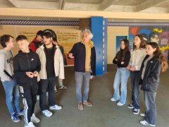 Le groupe 4ème1 HAB étudie le projet de fresque présenté par Margaux, Clémence et Laurine de 4ème6.