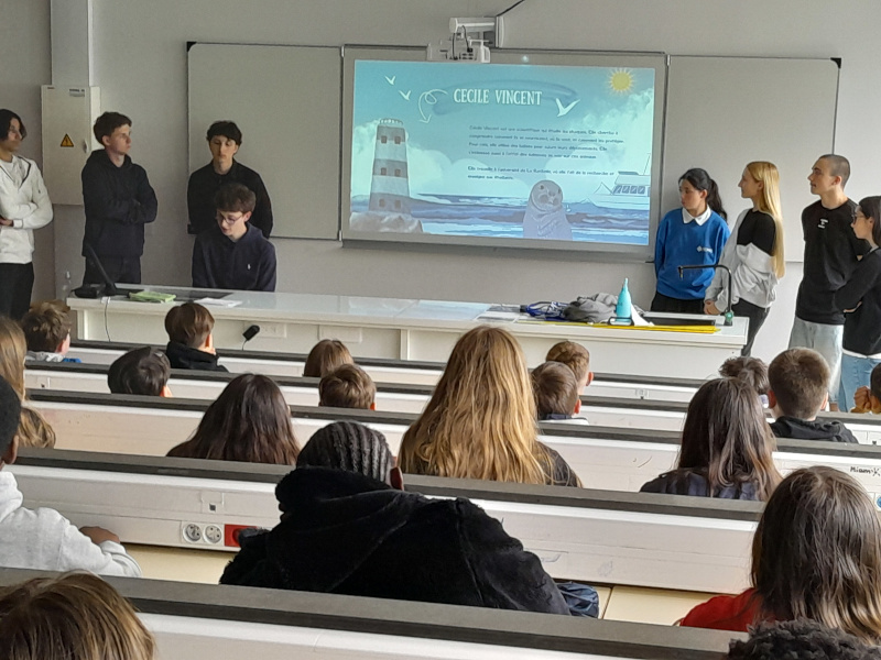 Ils leur ont présenté les différentes espèces qu’ils pourront tenter de voir lors d’une prochaine sortie en mer. Les BD faites sur le thème par les secondes ont été aussi affichées.