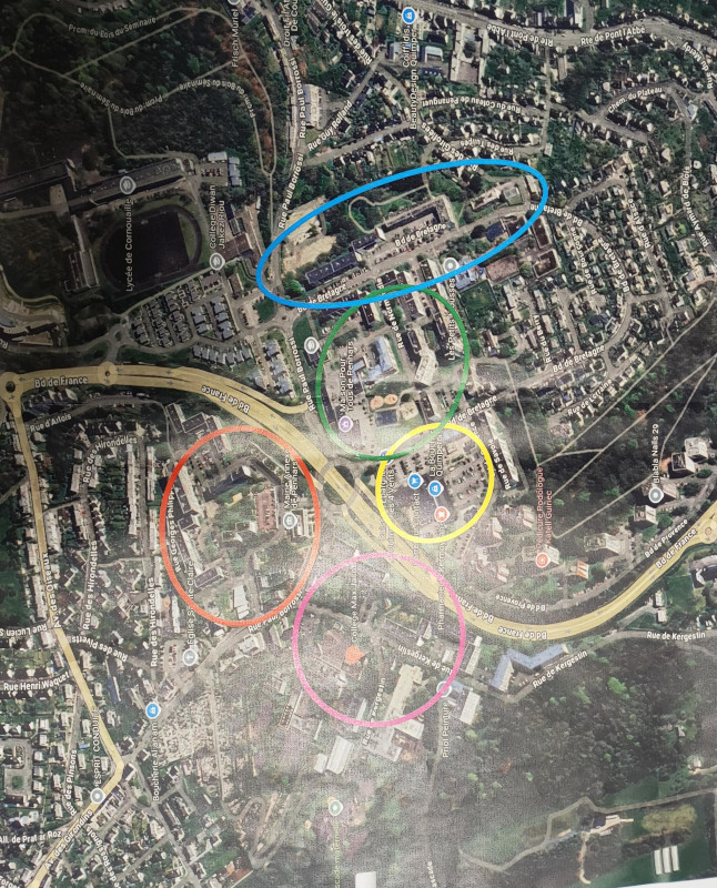 Les 5 zones définies étaient le collège Max Jacob, la place d’Écosse, les alentours de Carrefour Market, les alentours de la MPT de Penhars et le boulevard de Bretagne.