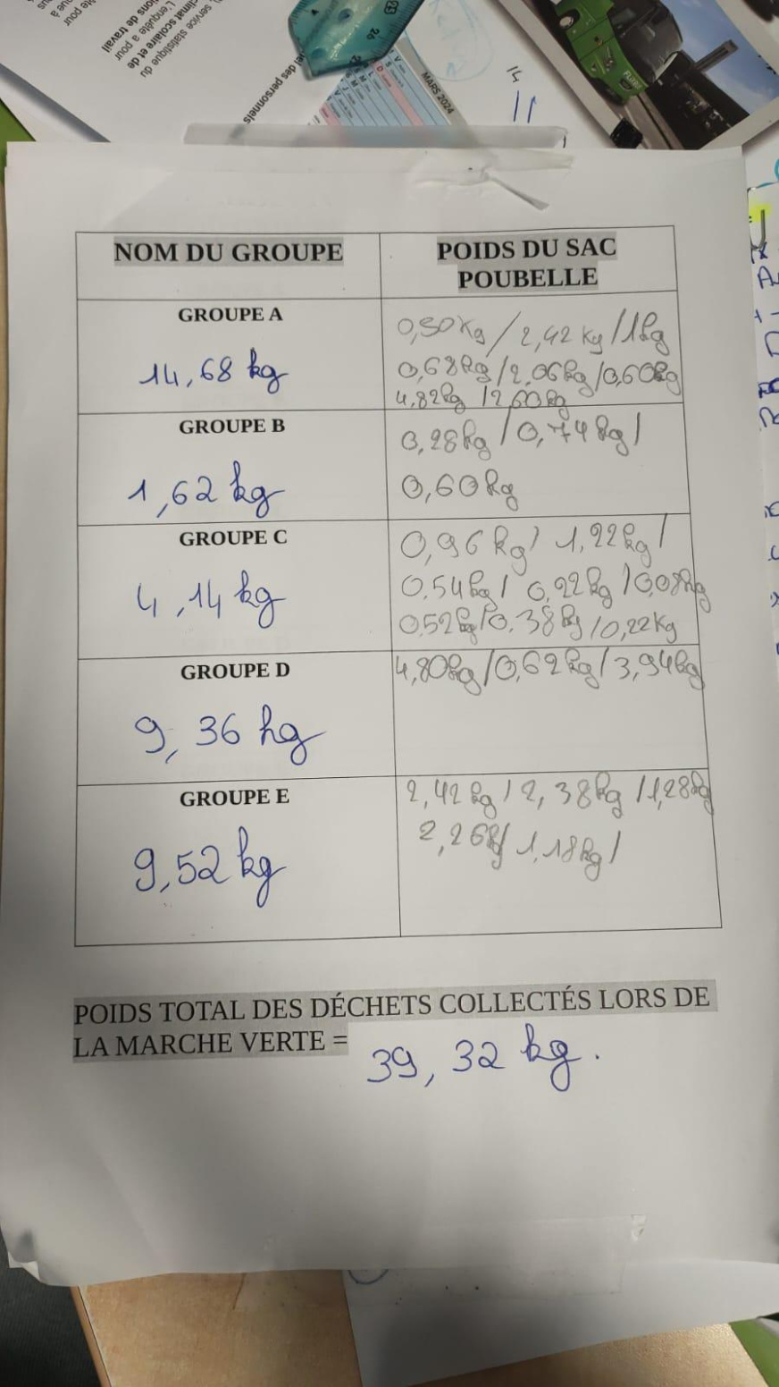 Une zone de récupération des déchets a été mise en place et les déchets ont été pesés au retour des élèves.