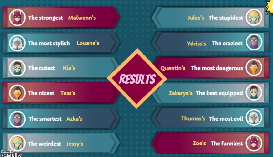 Les élèves de 6e4 ont participé à un concours de super-héros / super-vilain durant le cours d’anglais.