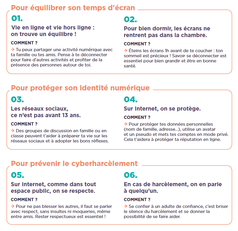 Voici deux documents pour accompagner votre enfant dans sa vie numérique :