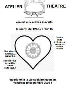 Les inscriptions se font en vie scolaire jusqu’au 19 septembre pour une première séance le mardi 23 septembre.