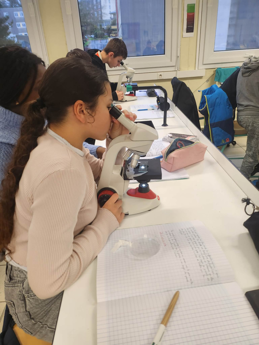 En cours de SVT, les élèves de 6e 6 ont appris a observer au microscope.