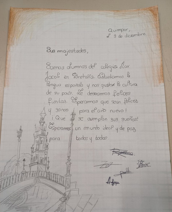 Les élèves du club Hispamax ont écrit une lettre de bons vœux au Roi Felipe et la Reine Letizia. La lettre a été postée mardi 9 décembre et envoyée au palais de la Zarzuela à Madrid.