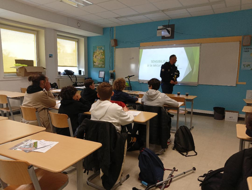 Vendredi 16 janvier 2026, des représentants de la Police Municipale de Quimper sont venus au collège sensibiliser les élèves de 5e au bon comportement sur la route.