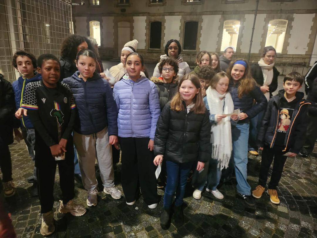 La classe devant le Théâtre de Cornouaille |