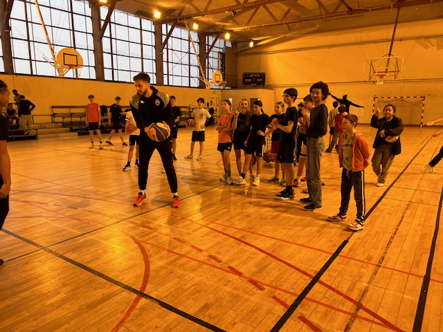 Lylia a côté des joueuses 1,94m et 1,98m… |