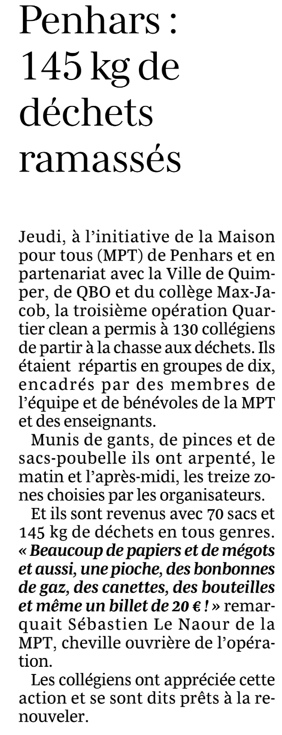 Dans Ouest-France « A Penhars, ils luttent contre le harcèlement »