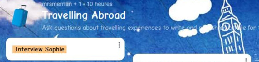 La visite de l’assistante de langues en 3è LCE nous a permis d’échanger en classe sur les voyages et les anecdotes insolites qui nous arrivent en voyage. Les élèves ont joué les journalistes et complété le Padlet suivant pendant la séance.